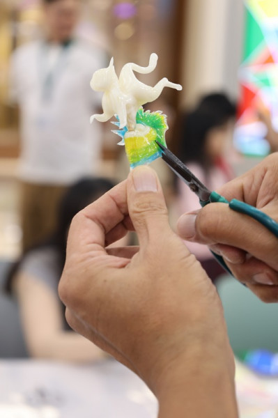 With a history spanning more than 600 years, the traditional art of sugar-blowing was inscribed into the Inventory of Intangible Cultural Heritage of Hong Kong in 2014. Affectionately known as “Sugarman,” Mr. To is dedicated to preserving and modernising the art. He has pioneered the use of plant-based, sugar-free ingredients to align with contemporary health-conscious trends. During the workshop, Mr. To demonstrated essential techniques—including sugar boiling, kneading and blowing—to transform molten sugar into vivid artistic creations. This hands-on experience allowed participants to appreciate the delicate craftsmanship of this traditional Chinese skill.