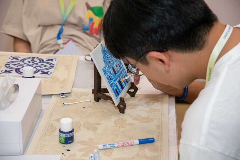 15 August 2025 – SJM Resots, S.A. (“SJM”) invited 30 youths from the Asia Society Hong Kong Center to visit the Grand Lisboa Palace Resort Macau (“GLP”) on 15 August for a diversified educational tour that combines Macau's history and intangible cultural heritage. On that day, the group first visited GLP Art Gallery to appreciate the exhibition “The Lisboa Stories of Macau”, exploring over 500 years of Macau’s history under the guidance of a tour guide. They then headed to the GLP Arte to participate in a “Hand-Painted Portuguese Tile” art workshop, experiencing the artistic charm of the fusion of Chinese and Portuguese cultures. Finally, the group visited the “Martial Arts Area” themed experience zone, enjoying an immersive martial arts experience through cutting-edge technology and VR virtual reality games, spending a day filled with education and fun.