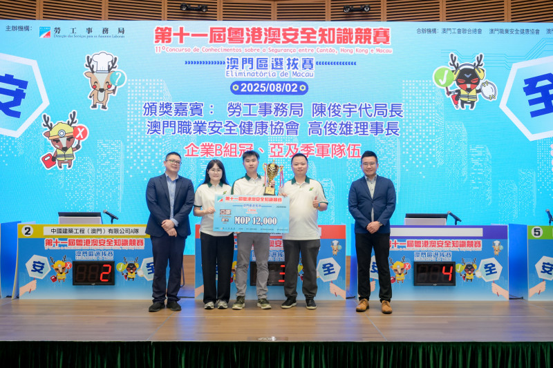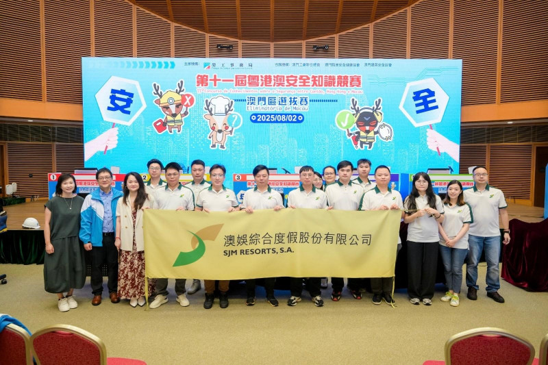 2 August 2025 - SJM Resorts, S.A. (“SJM”) actively supported the “11th Guangdong-Hong Kong-Macao Safety Knowledge Competition – Macao Regional Selection”, organised by the Macao Labour Affairs Bureau. SJM entered three teams and provided weeks of pre-competition training for team members. Held at the Macau Science Centre on 2 August, “SJM Team B” finished as first runner-up in the Corporate Group B Category after several rounds of intense competition among 19 participating teams.