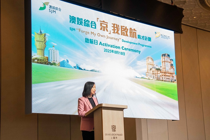 19 August 2025 – In line with the Macao SAR Government’s initiative “Building Macau Through Talent”, SJM Resorts, S.A. (“SJM”) has collaborated with the Macao University of Tourism (“UTM”) to launch the SJM “Forge My Own Journey” Development Programme (“Programme”). This innovative Programme integrates academic study with practical work experience, aimed at nurturing a new generation of professionals to support Macau’s growth as a World Centre of Tourism and Leisure. Sixty-four students from the inaugural cohort have assembled at Grand Lisboa Palace Resort Macau for the SJM “Forge My Own Journey” Development Programme Activation Ceremony, embarking on their education journey intertwined with vocational training.