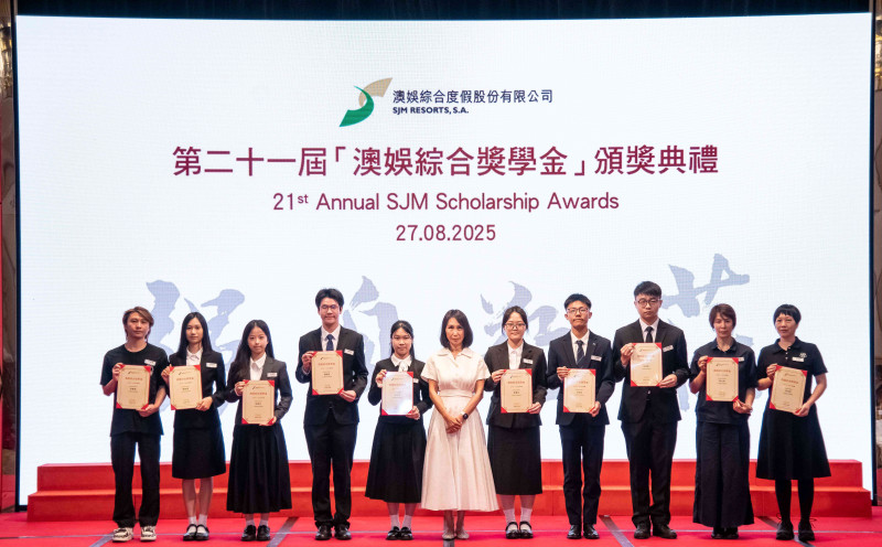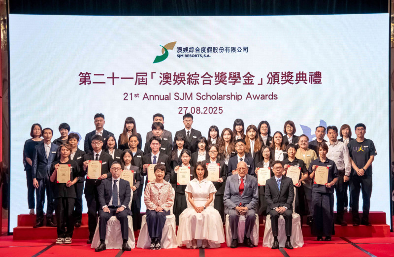 27 August 2025 – SJM Resorts, S.A. (“SJM”) today held the 21st SJM Scholarship Award Ceremony at the Grand Ballroom of Grand Lisboa Macau, presenting a total of MOP 730,000 in scholarships to 36 outstanding children of employees. The ceremony was attended by Ms. Daisy Ho, Managing Director of SJM, Ms. Angela Leong, Director of SJM and Chairman of the SJM Staff Welfare Consultative Committee, Dr. Rui Cunha, Secretary-General of SJM, and Mr. Daniel Shim, Chief Corporate Affairs Officer of SJM among other guests. They joined the parents in sharing the joy of the award recipients, creating a warm and lively atmosphere.