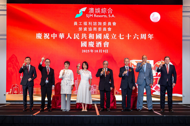 9 October 2025 – SJM Resorts, S.A. (“SJM”), in collaboration with the SJM Staff Welfare Consultative Committee (“SWCC”) and the SJM Joint Consultative Committee, hosted a reception to celebrate the 76th anniversary of the founding of the People’s Republic of China on 9 October at The Grand Pavilion of Grand Lisboa Palace Resort Macau. Mr. Timothy Fok, Chairman of the Board of Directors of SJM; Ms. Daisy Ho, Managing Director of SJM; Ms. Angela Leong, Director of SJM and Chairman of SWCC; Mr. Vong Hin Fai, Consultant of SJM Joint Consultative Committee, along with more than 2,000 team members participated in the celebratory reception, joining together to promote the spirit of “Love the Motherland, Love Macau”.