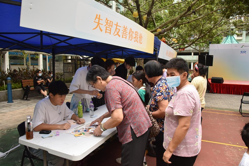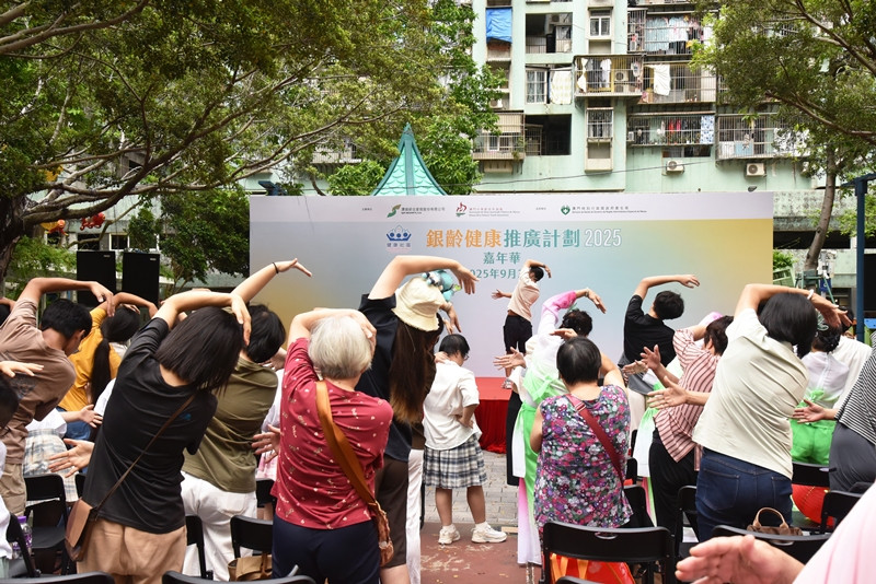 The Carnival featured ten game and information booths covering topics such as blood pressure testing, weight management, healthy eating, and understanding dementia in recognition of September's “World Alzheimer's Month”. There were also stage performances, and coaches led citizens in stretching exercises. Additionally, youth from the SJM “Youth Handicraft Instructor Training Programme” taught seniors and neighbours how to create small crafts, providing practical experience for the youth and promoting respect for the elderly. The event also invited members from the Macau Down Syndrome Association, the Association for the Promotion of Friends of Intellectually Disabled People and their Elderly Family Members in Macau, and the Sheng Kung Hui Macau Social Services Coordination Office to present engaging performances, creating a lively and joyful atmosphere.