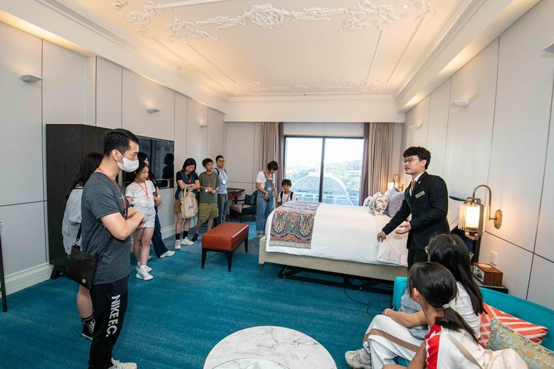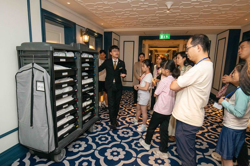 27 September 2025 – SJM Resorts, S.A. (“SJM”) welcomed approximately 30 family members on 27 September for a technology interactive exploration tour at the Grand Lisboa Palace Resort Macau (“GLP”). This event was part of the “Parent-Child Career Experience Activities” organised by the Parenting Education Centre of the Education and Youth Development Bureau.
