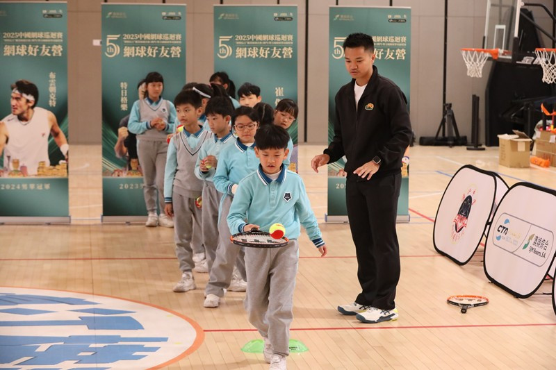 The “Tennis Clinic” kicked off with the host introducing the CTA Tour and sharing the latest updates on the development of tennis in China. This was followed by two rounds of engaging group games, led by professional coaches who guided students through friendly challenges that emphasised teamwork, coordination and fun. An exhibition of past CTA Tour champions, including Bu Yunchaokete, Wu Yibing, Liu Fangzhou, Wang Yafan, Cui Jie, Te Rigele and Wang Qiang, offered students the chance to appreciate the presence of national tennis icons up close, inspiring their passion and aspirations for the sport. This activity further deepened students’ understanding of China’s sporting achievements, nurturing a sense of national pride while cultivating a love for physical activity.
